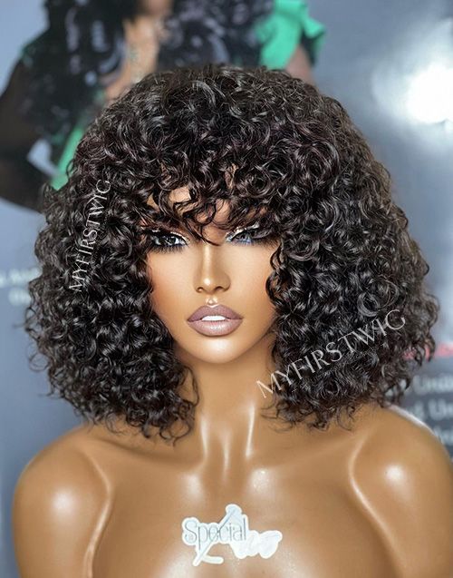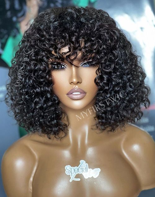 Aspecialunit-Malaysian Hair Curly Bob Wig With Bangs Lace Front Wig - SPE014