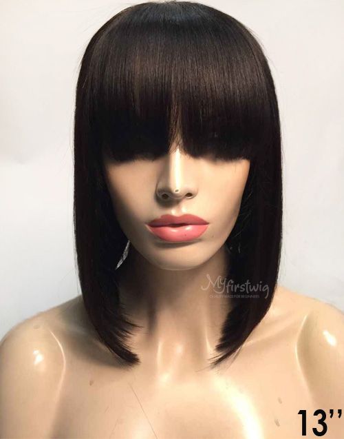 Darlene- Bob Wig With Bangs Fringe Glueless Invisible Lace Front Wig - LFW006