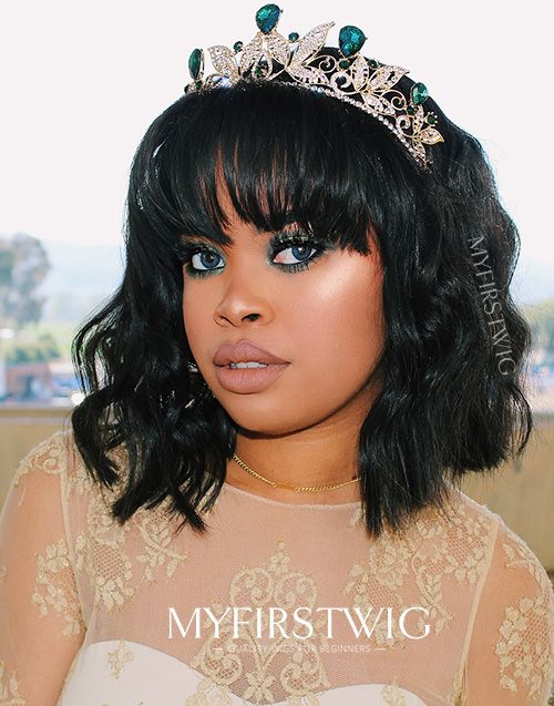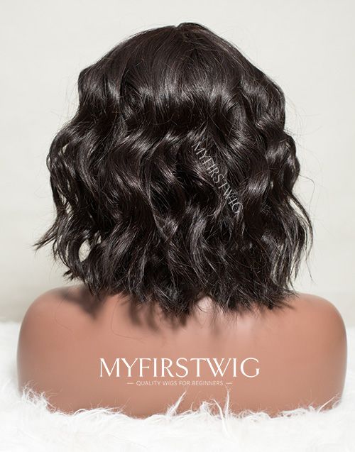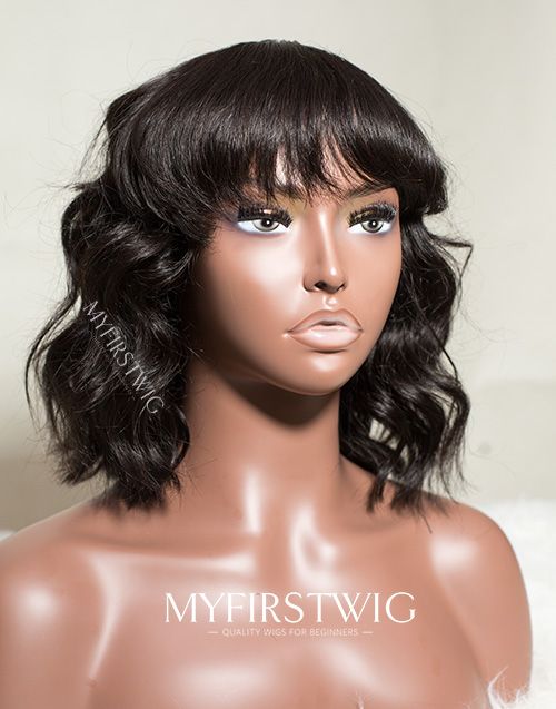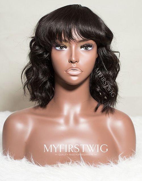 Malaysian Messy Wave Bob Wig With Bangs Lace Front Wig - LFW078
