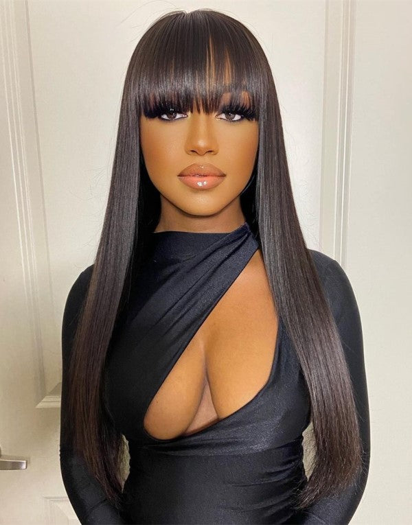 Olivia - Straight Wig With Bangs Fringe Glueless Invisible Lace Front Wig - LFW018