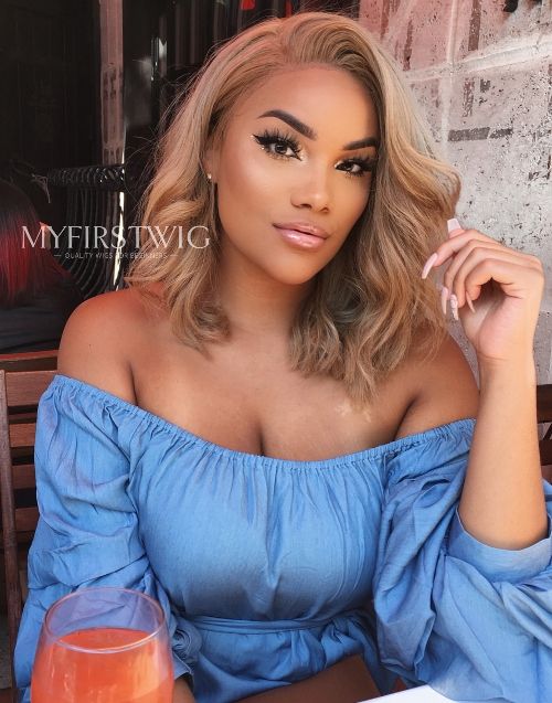 Allyiah - Malaysian Human Hair Blonde Wavy Bob Lace Front Wig - ALF003