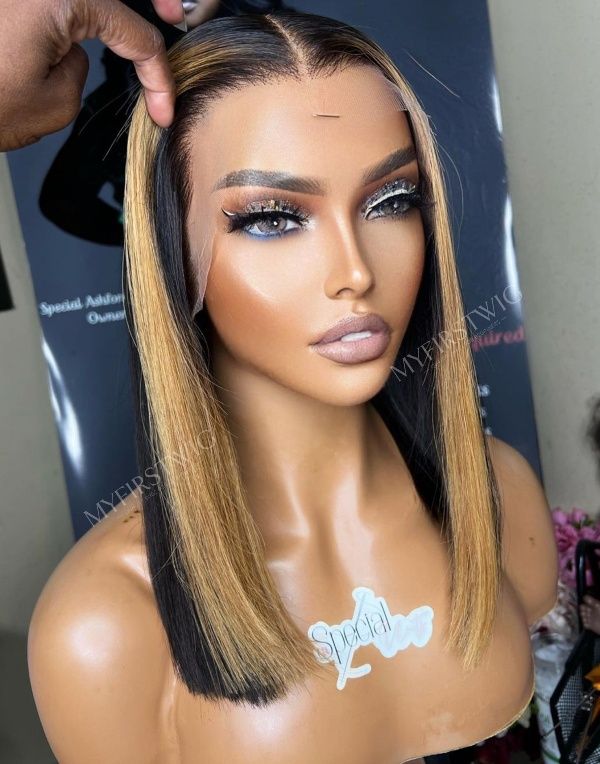 ASpecialUnit - Skunk Stripe Blonde Shoulder Length Wig Glueless Invisible Lace Front Wig - SPE001