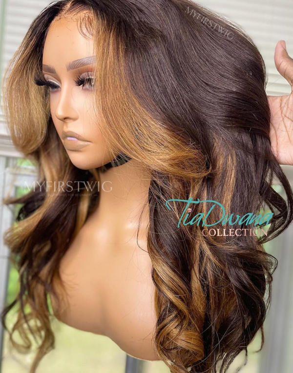 TiaDwana- Malaysian Human Hair Blonde Money Piece Wavy Lace Front Wig - TDC004