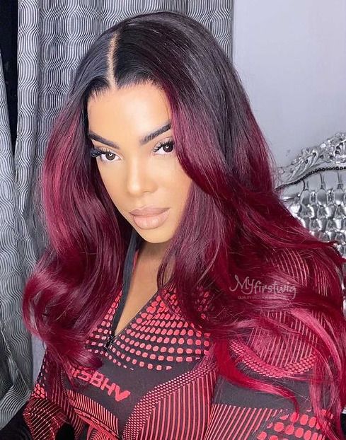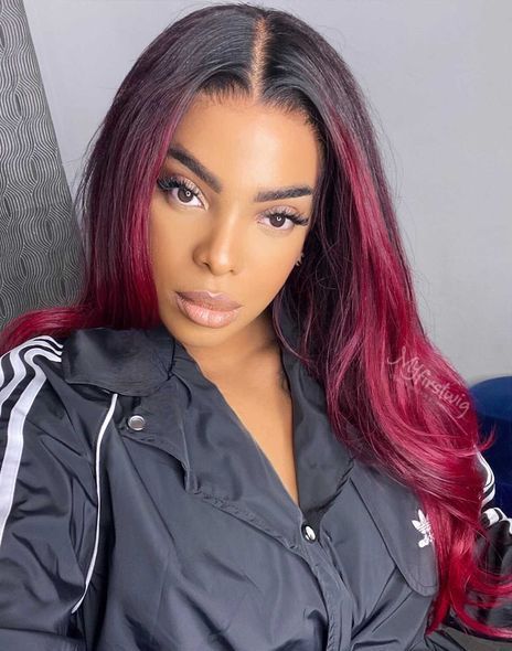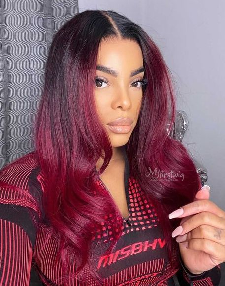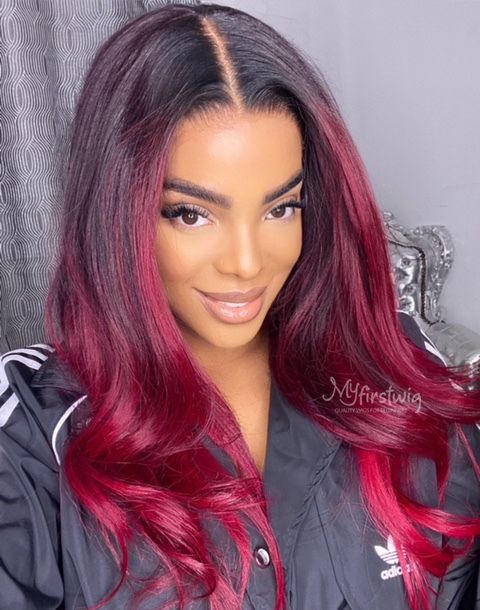 Lilvanilla - Malaysian Human Hair Ombre Burgundy Wavy Lace Front Wig - LIL003