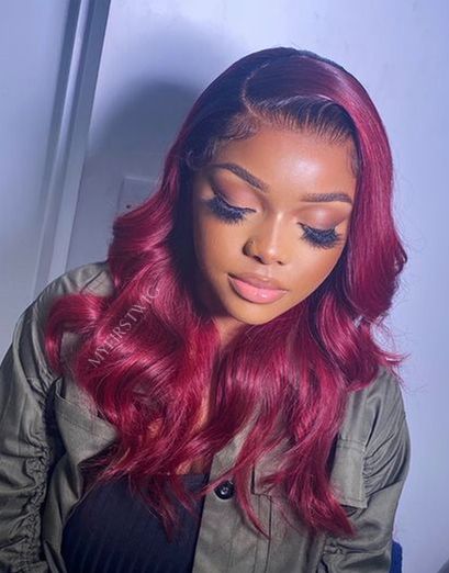 Wigginituk - Malaysian Virgin Hair Burgundy Wavy Lace Front Wig - WK003