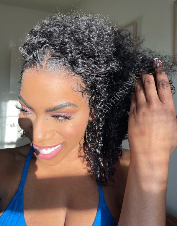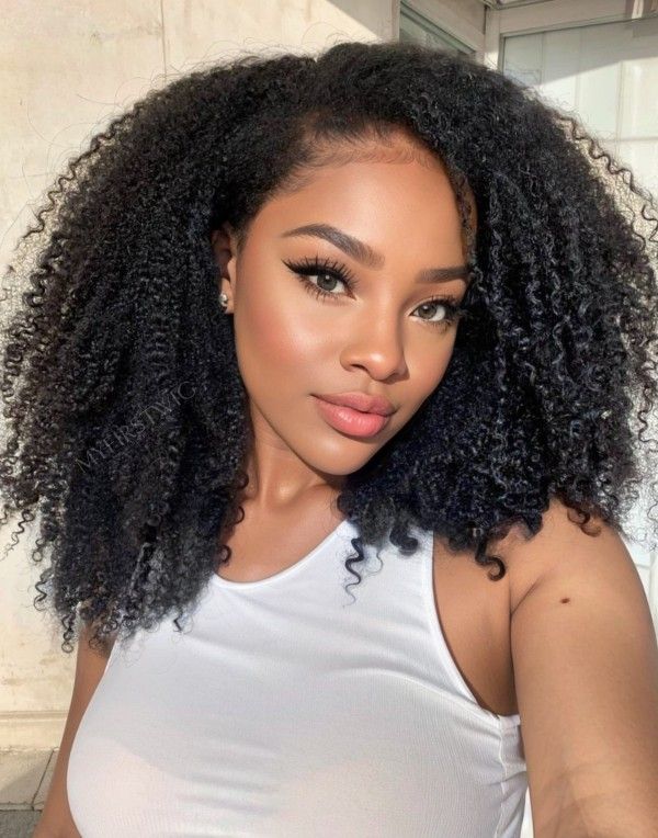 Hair Inspiration - Natural Kinky Curly Glueless Human Hair Lace Front Wig - NTX003