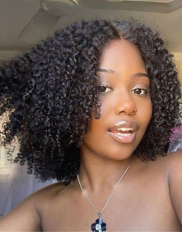 Side Part Kinky Curly Human Hair Glueless Invisible Lace Wig - LFC032