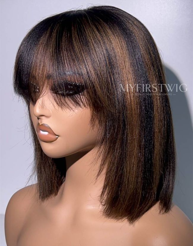 10-12 Inch Highlight Bob With Bangs 4 In 1 Pre Everything Glueless Wigs - BFB017