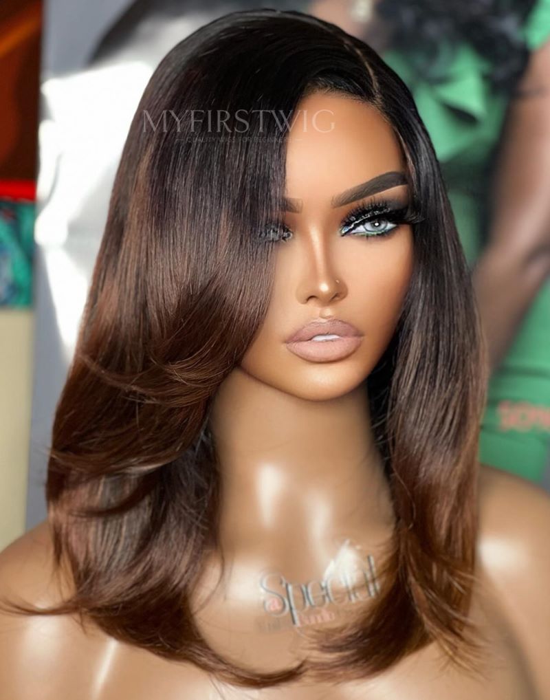 14-20 Inch Ombre Brown Layered Cut HD Lace Wear & Go Glueless Closure Wig - BFS005