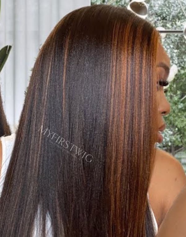 14-20 Inch Straight Long Brown Highlight 4 In 1 Pre Everything Glueless Wigs - BFS008