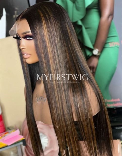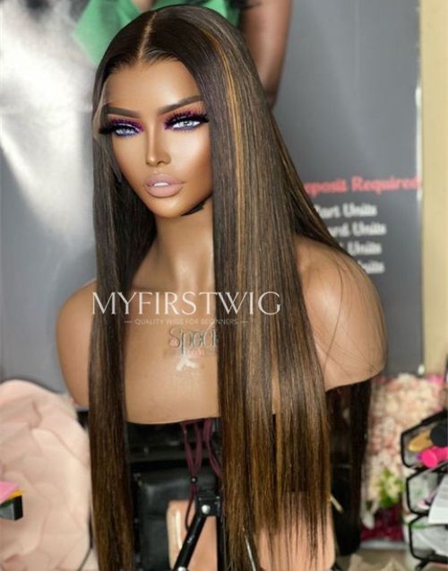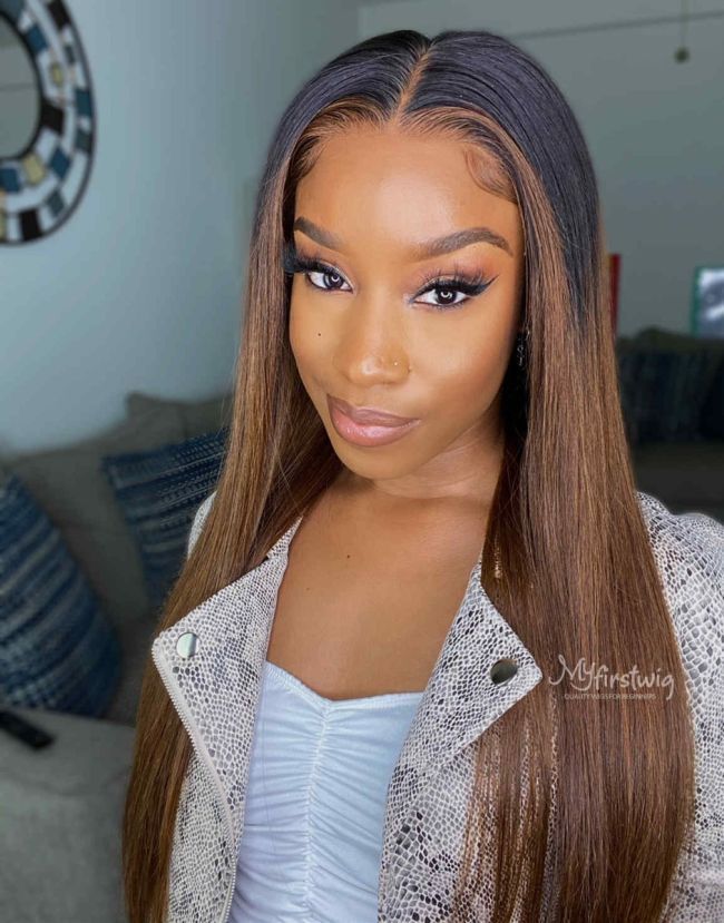 14-20 Inch Highlight Brown Straight HD Lace Wear & Go Glueless Closure Wig - BFS013
