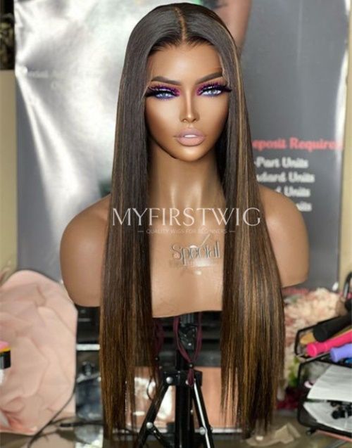 14-20 Inch Straight Long Brown Highlight 4 In 1 Pre Everything Glueless Wigs - BFS008