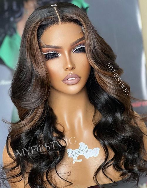 14-20 Inch Brown Highlight Wavy 4 In 1 Pre Everything Glueless Wigs - BFW008