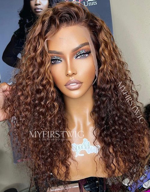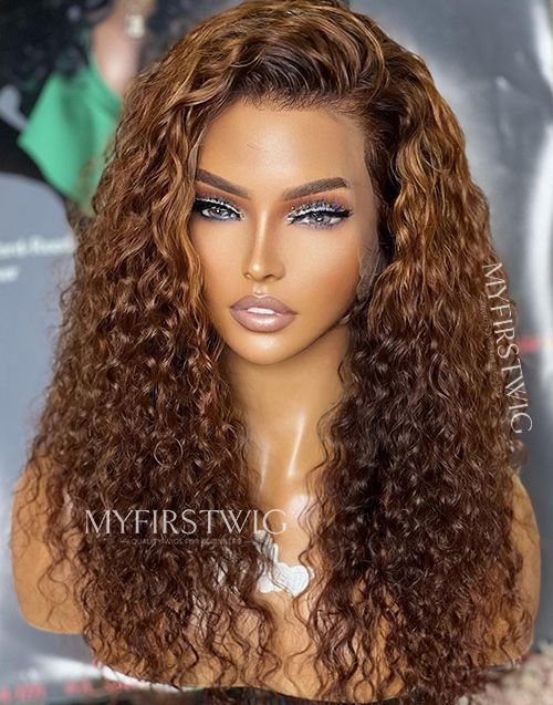 14-20 Inch Caramel Brown Deep Wave Curly 4 In 1 Pre Everything Glueless Wigs - BFC003
