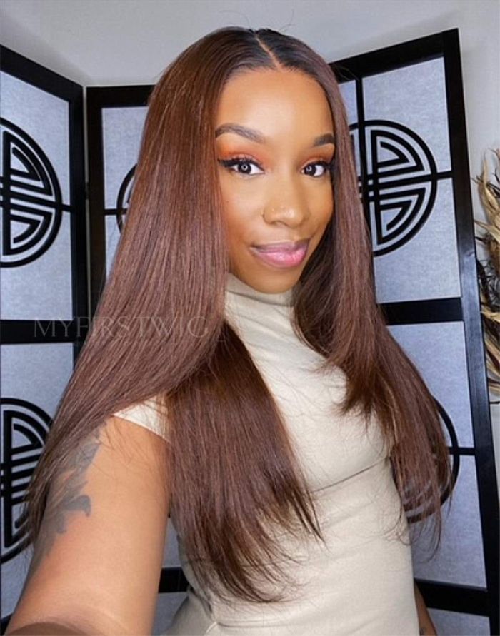 14-20 Inch Caramel Brown Straight Layers 4 In 1 Pre Everything Glueless Wigs - BFS014