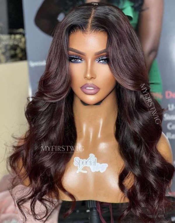 14-20 Inch Dark Burgundy Wavy 4 In 1 Pre Everything Glueless Wigs - BFW002