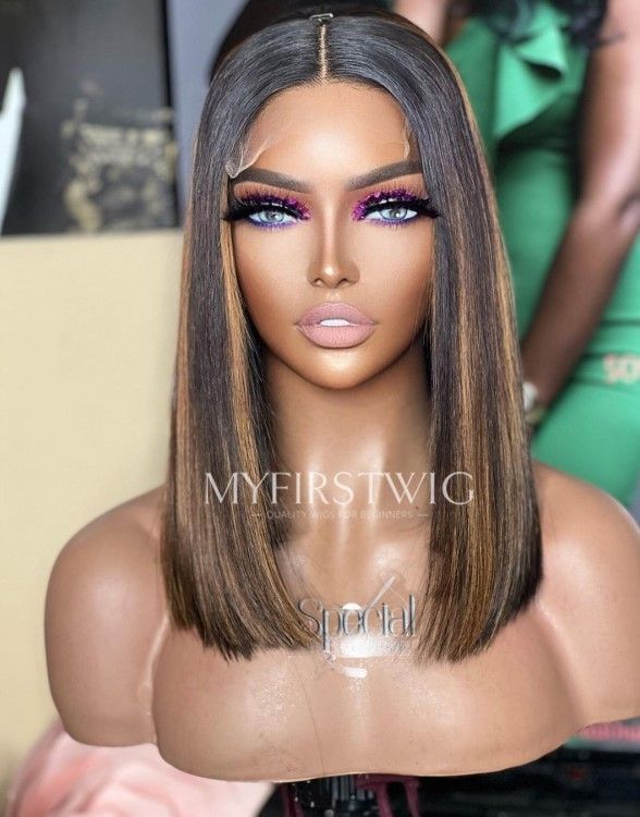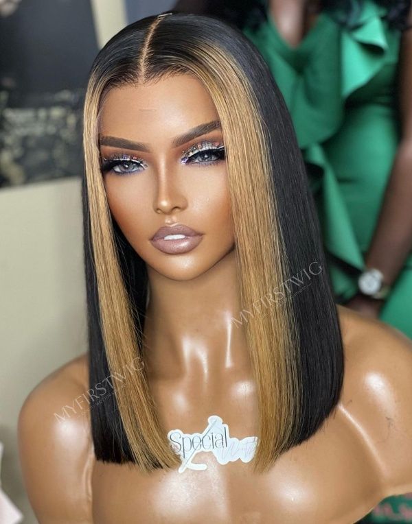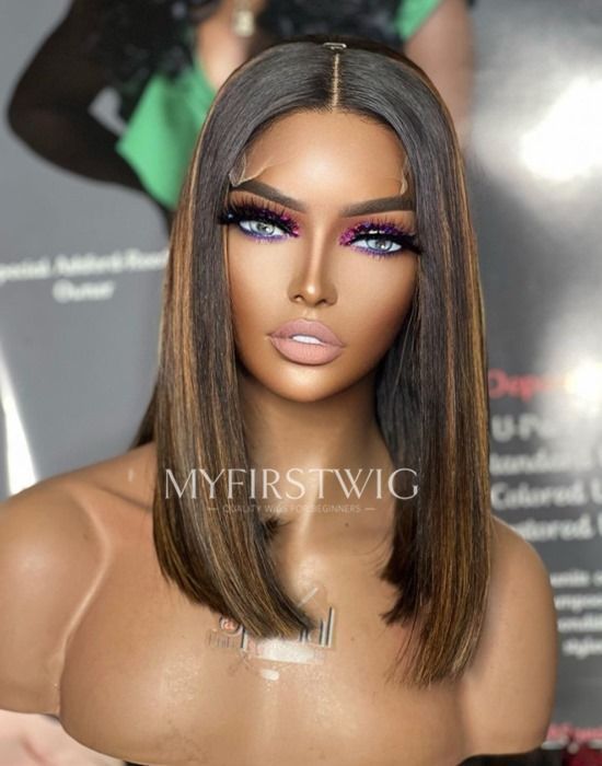 14-20 Inch Brown Highlight Long Bob 4 In 1 Pre Everything Glueless Wigs - BFS021
