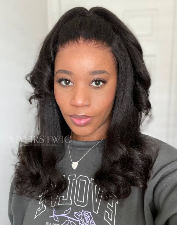 14-20 Inch Middle Part Kinky Straight 4 In 1 Pre Everything Glueless Wigs - BFK002