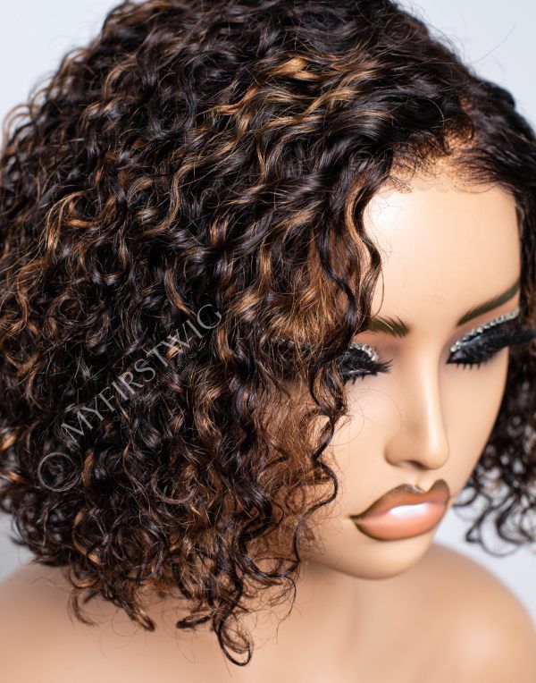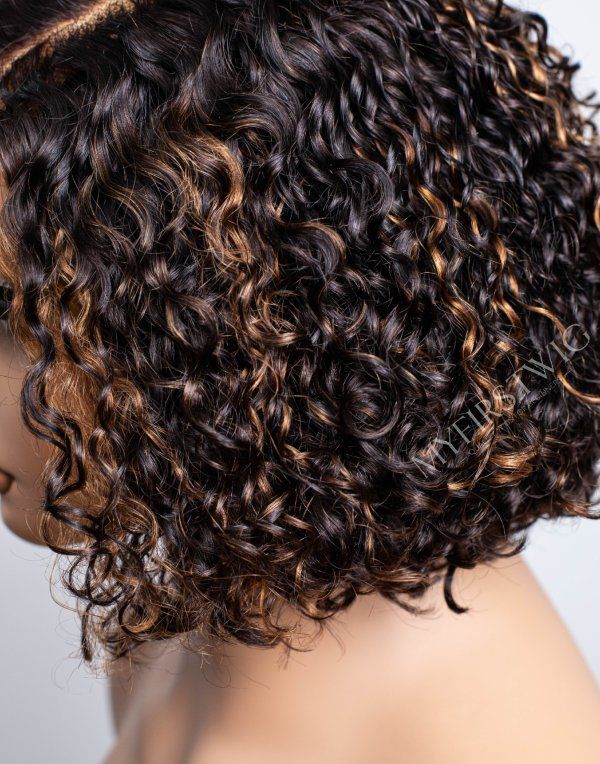 10-12 inch Brown Highlight Short Curly 4 In 1 Pre Everything Glueless Wigs - BFB024