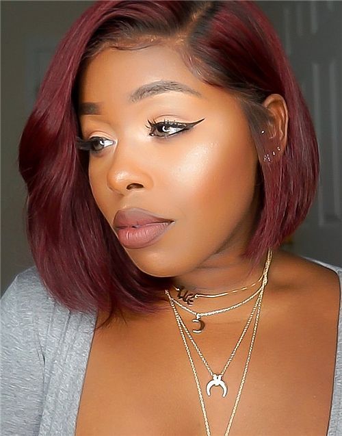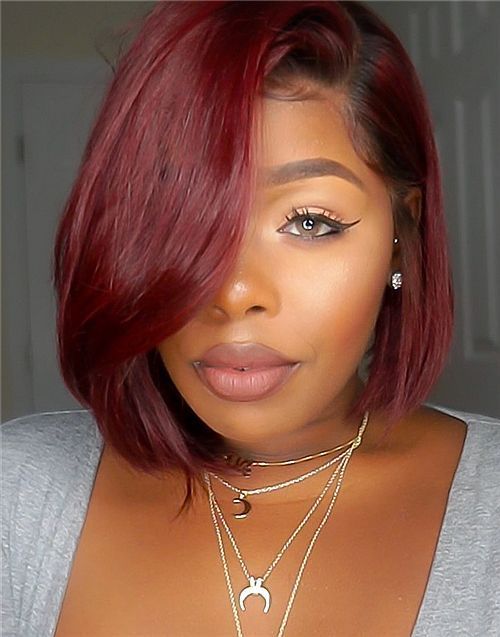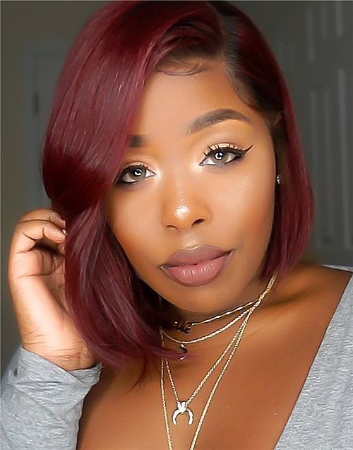 10-12 Inch Burgundy Bob 4 In 1 Pre Everything Glueless Wigs - BFB009
