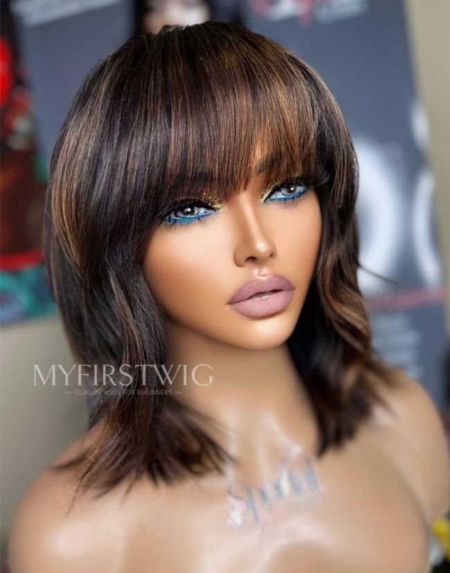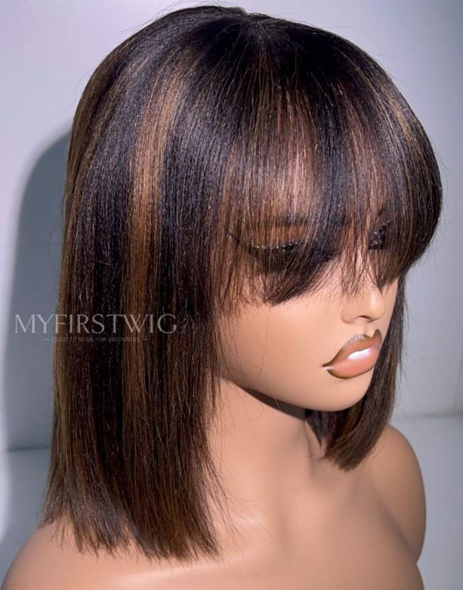 10-12 Inch Highlight Bob With Bangs 4 In 1 Pre Everything Glueless Wigs - BFB017