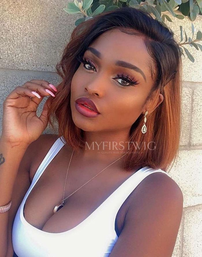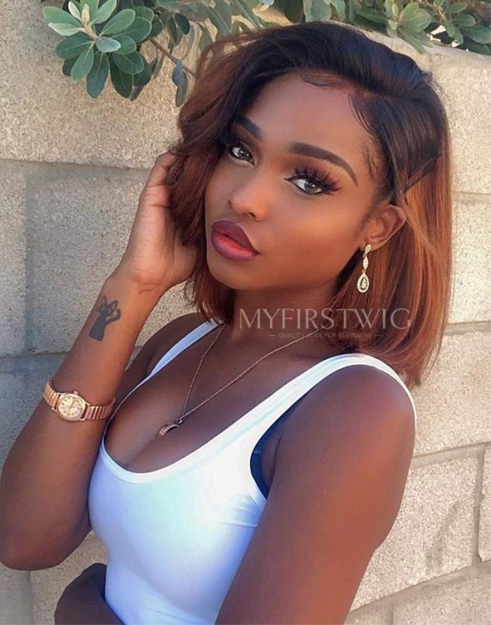 10-12 Inch Ombre Brown Bob 4 In 1 Pre Everything Glueless Wigs - BFB013