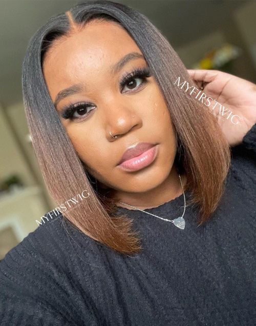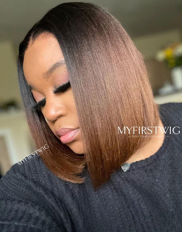 10-12 inch Yaki Ombre Brown Bob 4 In 1 Pre Everything Glueless Wigs - BFB004