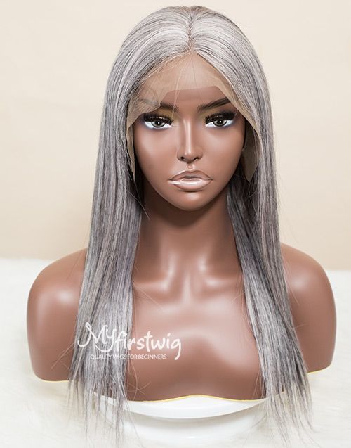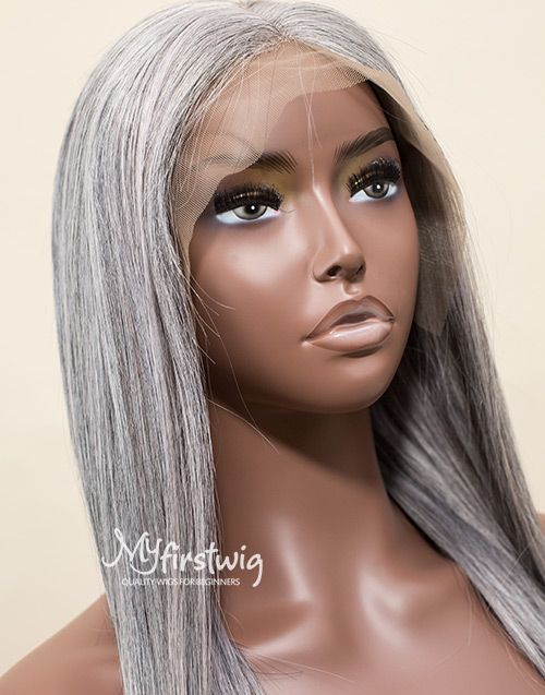 Selena - Malaysian Salt And Pepper Grey Straight Lace Front Wig - MW001