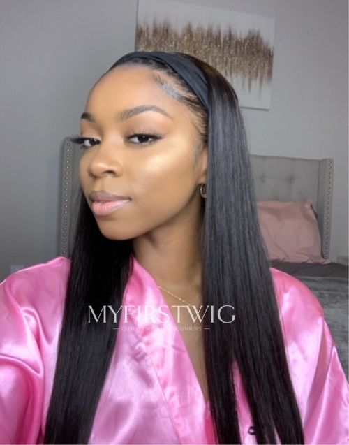 Headband Wig - ABE - Human Hair Yaki Straight Layers - HBW001