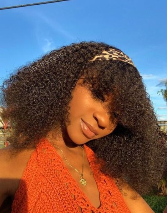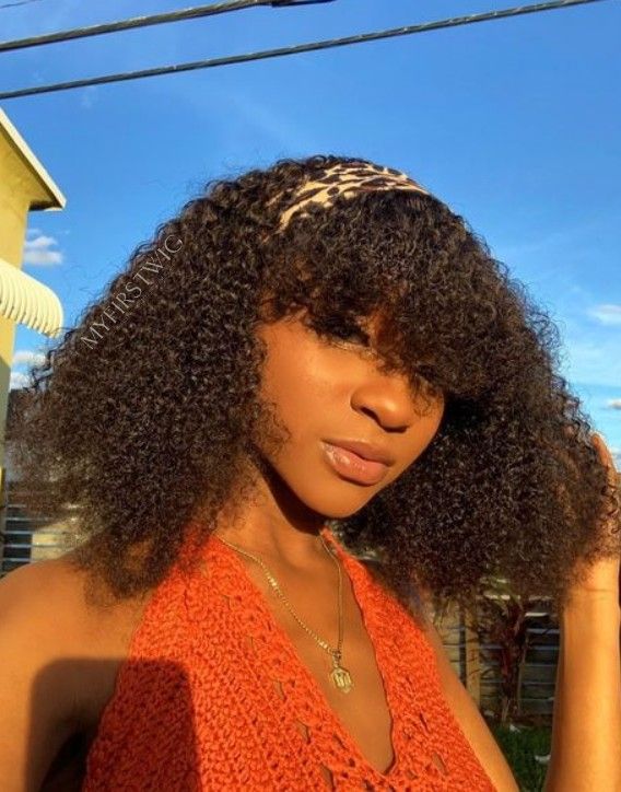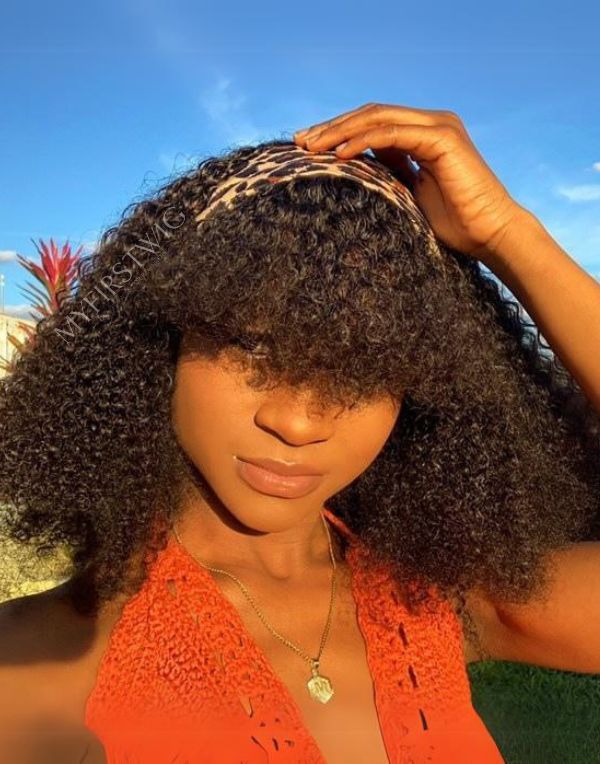 HEADBAND WIG - Coily (3C-4A) Curly With Bangs Human Hair Headband Wig - HBW076