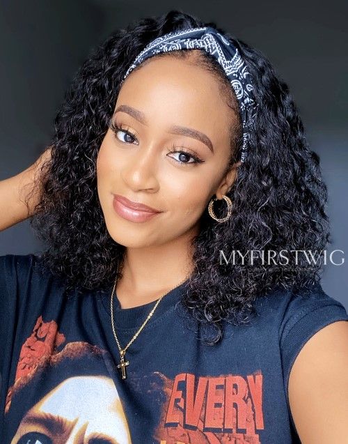 Headband Wig - Sharon - Short Curly Bob Human Hair Headband Wig - HBW049