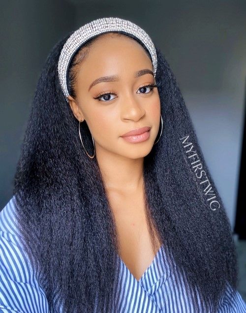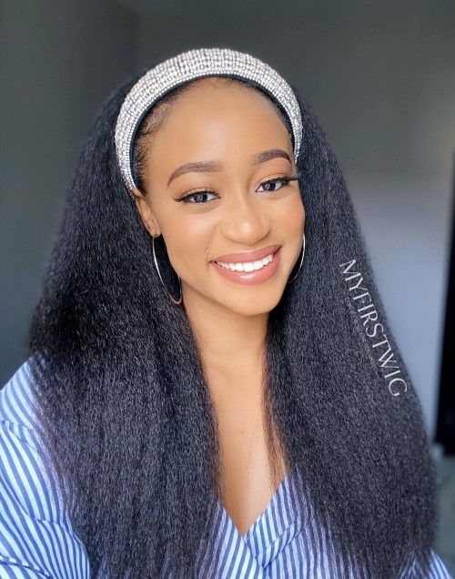 Headband Wig- Simone - Human Hair Kinky Straight Headband Wig - HBW014