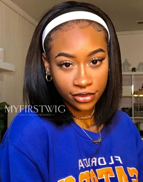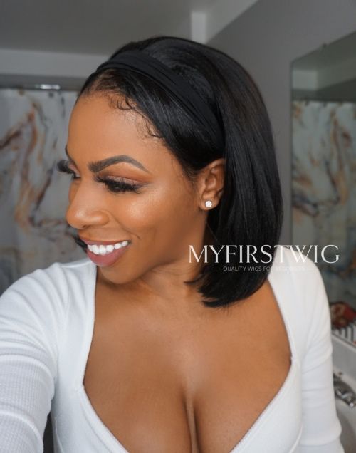 Headband Wig - TARA - Human Hair Yaki Bob Headband Wig - HBW005