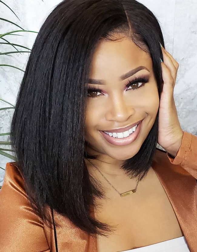 Nia - Kinky Straight AsymmetricBob Human Hair Lace Front Wigs - LFK002