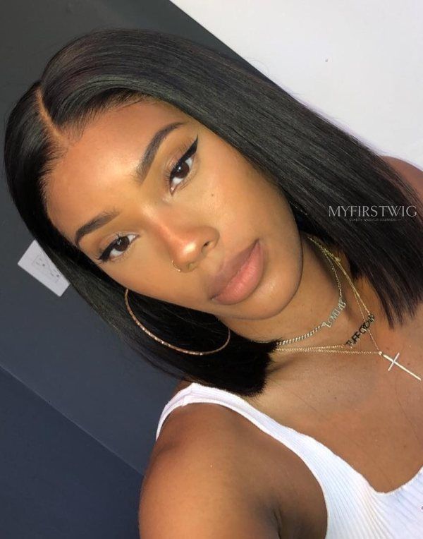 Side Part Yaki Bob Glueless Human Hair Lace Front Wigs - LFB055