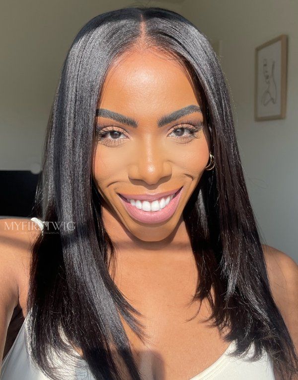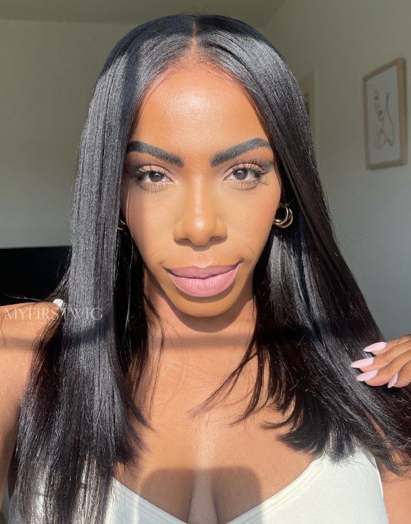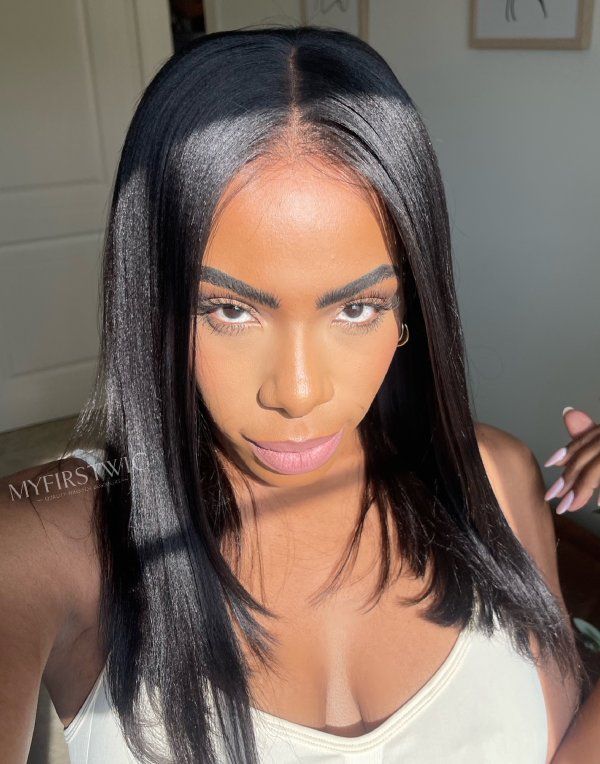 Layerer Cut Yaki Straight Glueless Human Hair Lace Front Wig - ANI8002