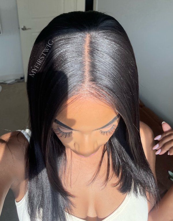 Natural Hair Textured Yaki Blunt Cut Bob Glueless Wig Invisible Lace Front Wig - Yaki023