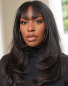Full Layered Cut Yaki Straight With Wispy Bangs Glueless Invisible Lace Front Wigs - MAI008
