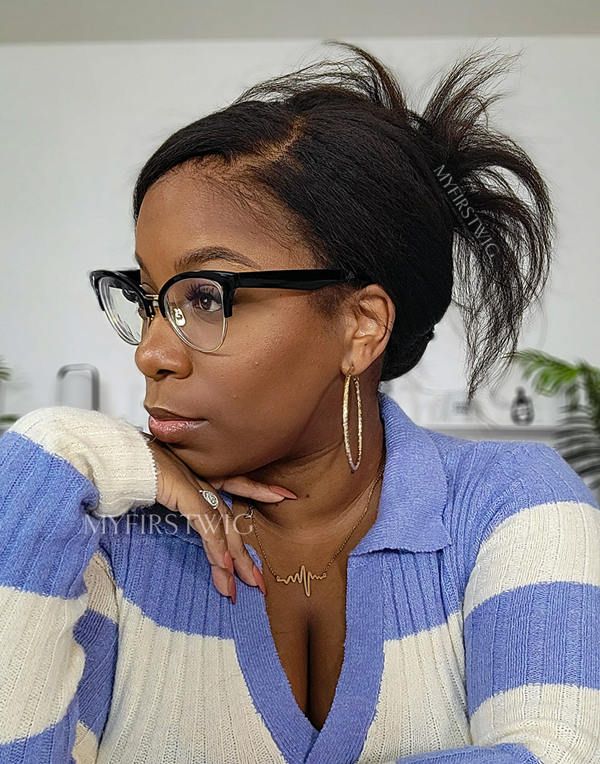Kie Rashon - Kinky Straight Side Part Glueless Invisible Lace Front Wigs - KIE001