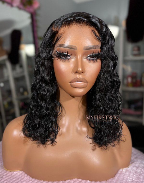Malaysian Messy Wave Bob Wig With Bangs Lace Front Wig - LFW078