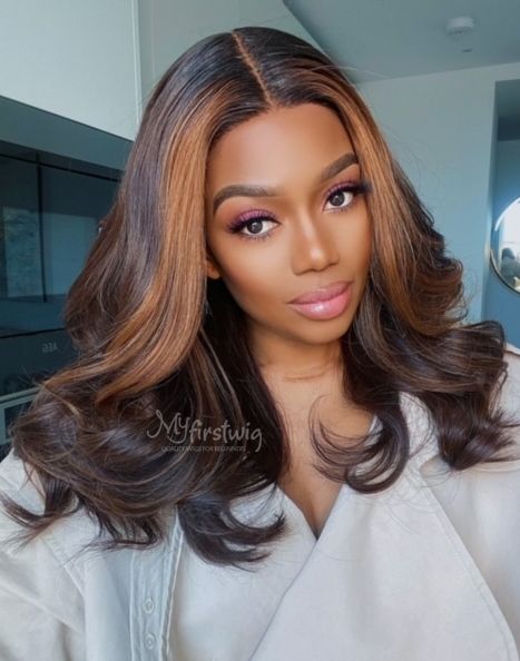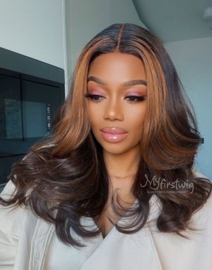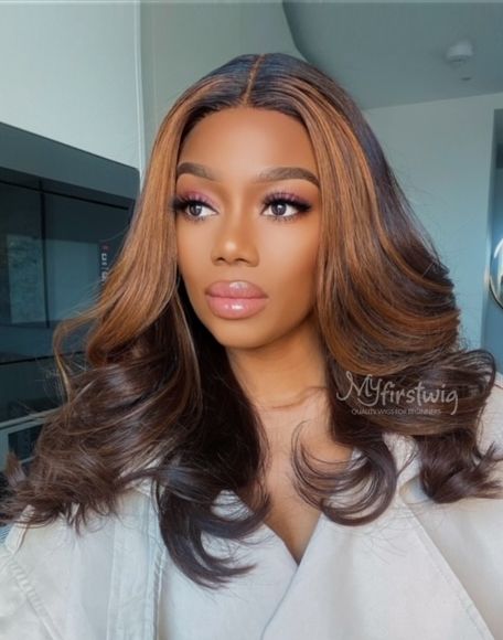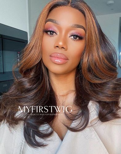 Coverupbyselorm - Malaysian Human Hair Highlight Chocolate Brown Wavy Lace Front Wig - CBS015