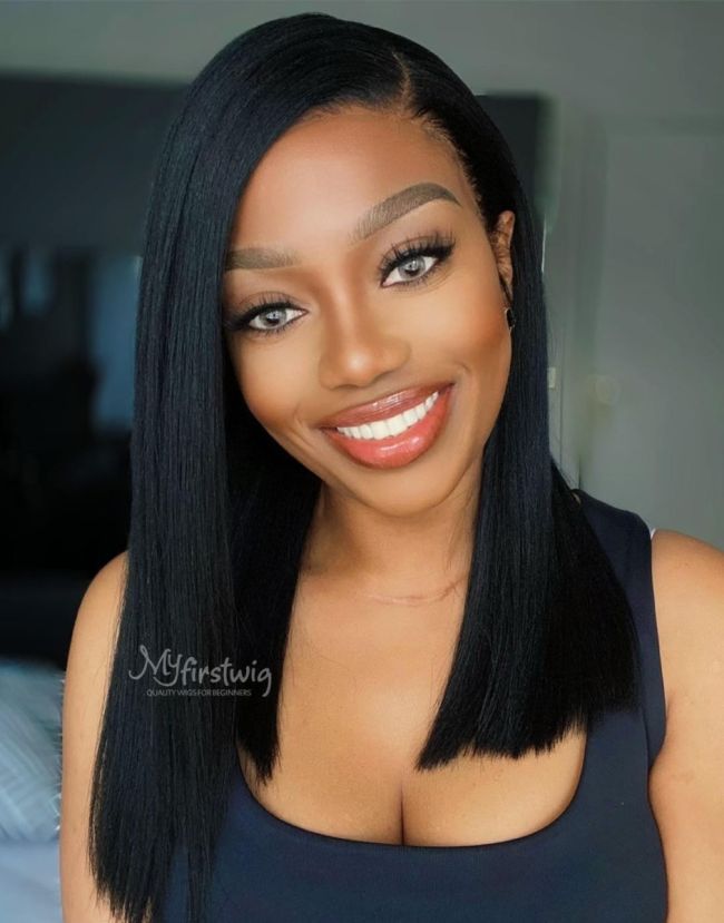 Coverupbyselorm - Jet Black Middle Part Straight Lace Front Wig Malaysian Human Hair - CBS021