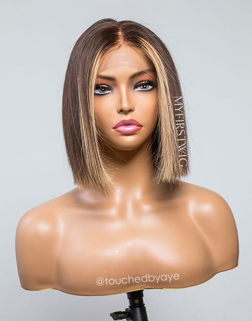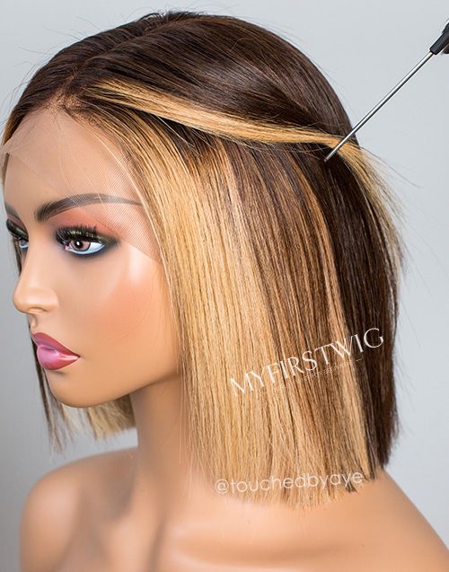 Touchedbyaye - Blonde Short Bob Money Piece Glueless Lace Front Wig - LFB034