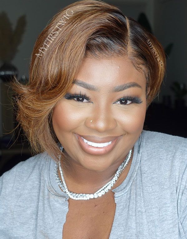 TouchedbyAye - Malaysian Hair Brown Wig Bixie Short Lace Front Wig - TBA013