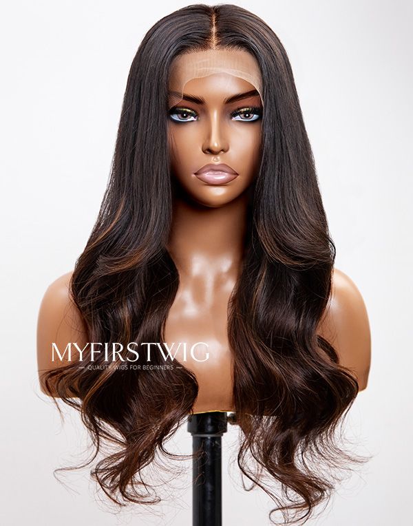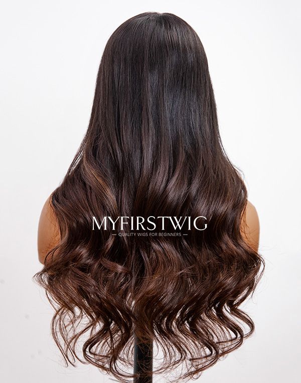 TouchedbyAye - Malaysian Hair Long Wavy With Brown Ombre Lace Front Wig - TBA012