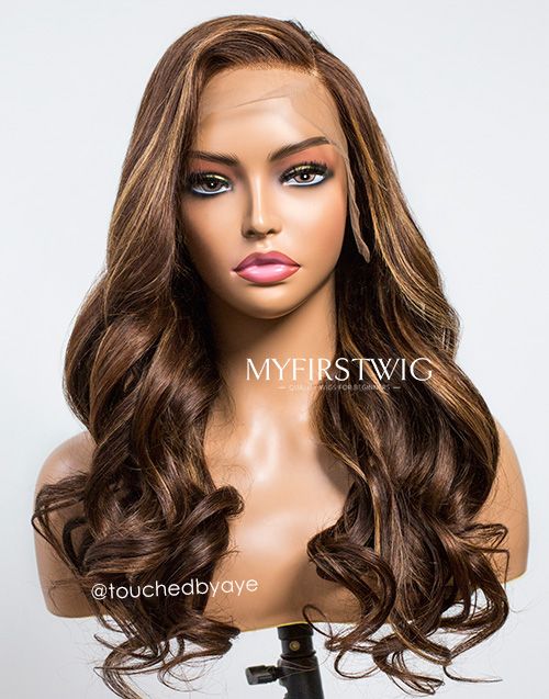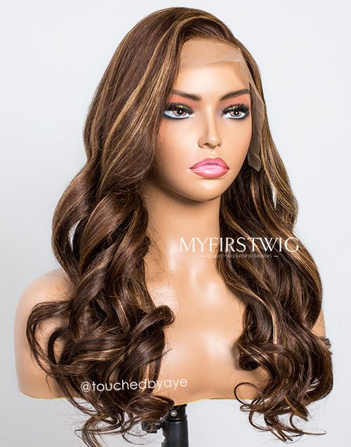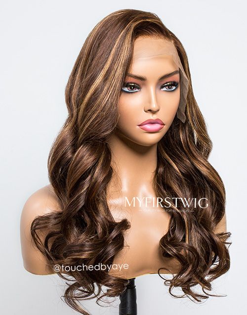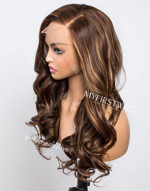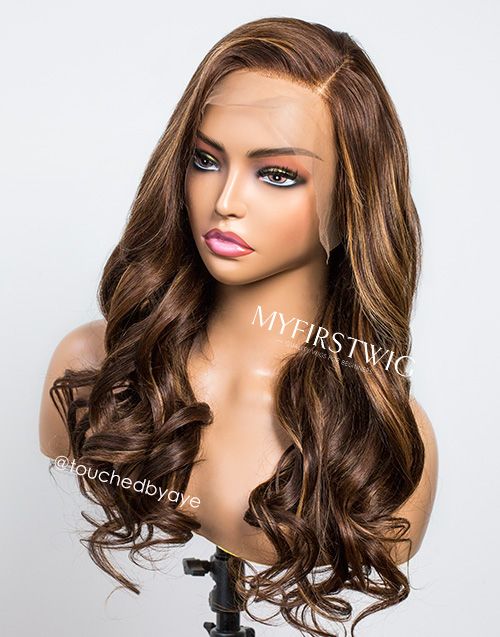 TouchedbyAye - Malaysian Human Hair Brown Highlight Wavy Lace Front Wig - TBA001