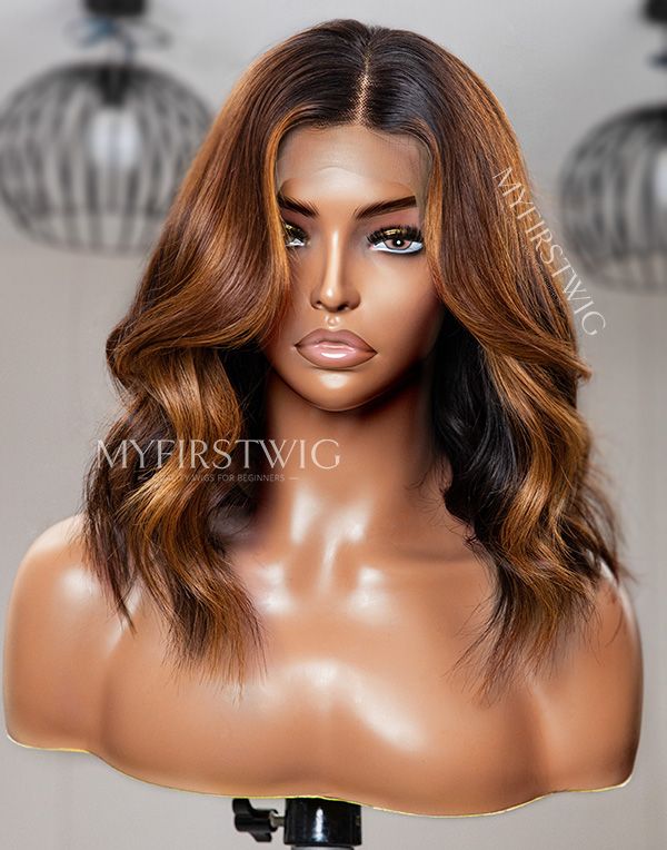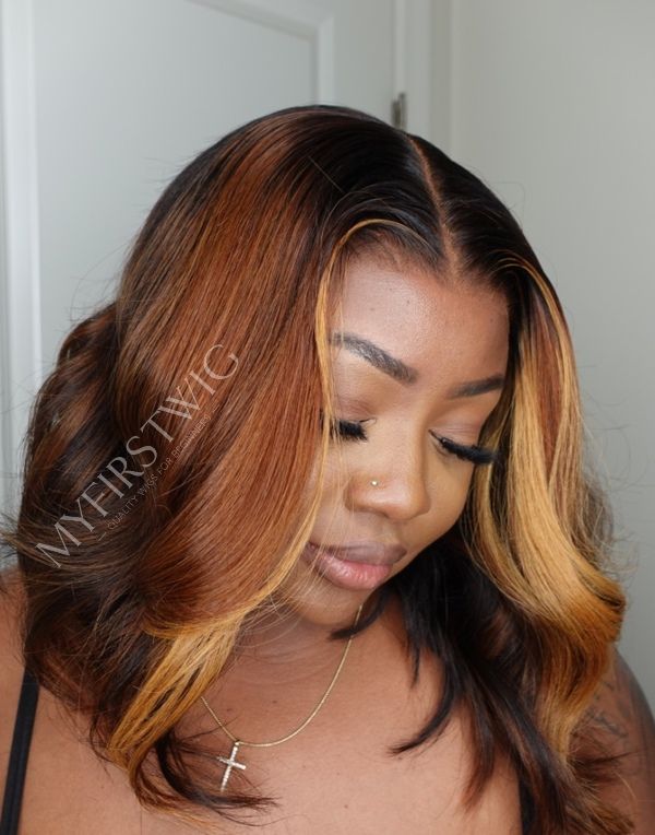 TouchedbyAye- Malaysian Human Hair Brown Ombre Short Wavy Lace Front Wig - TBA009