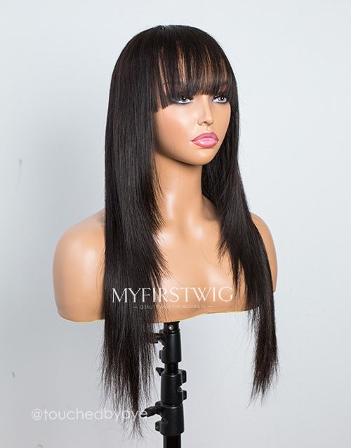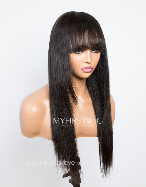 Touchedbyaye - Layered Straight With Bangs Lace Front Wig Malaysian Human Hair - LFS009