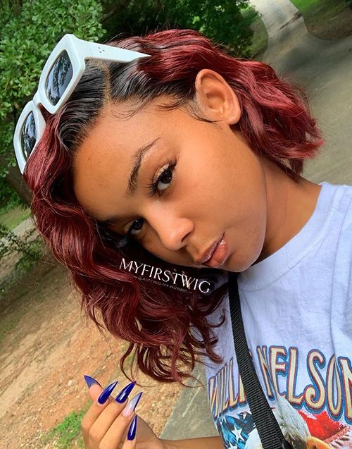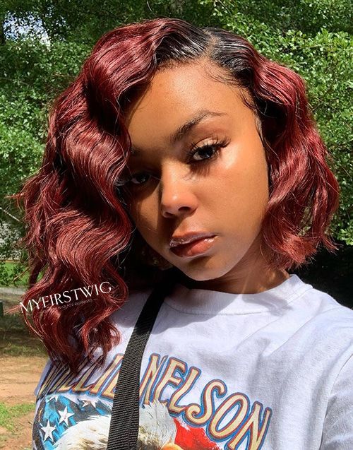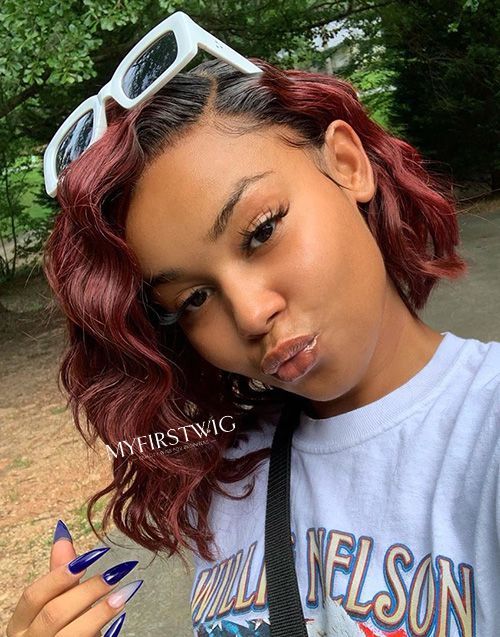 Alexandra - Malaysian Virgin Hair Burgundy Bob Wavy Lace Front Wig - LFB039