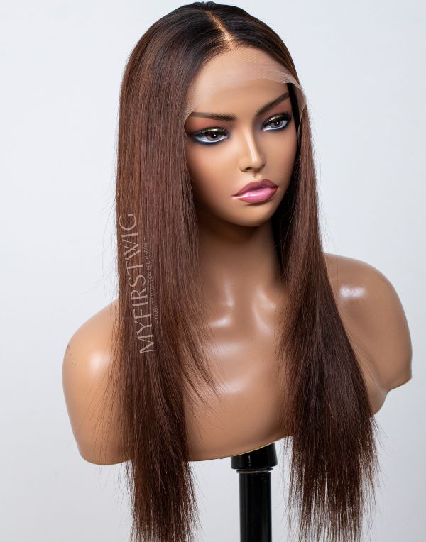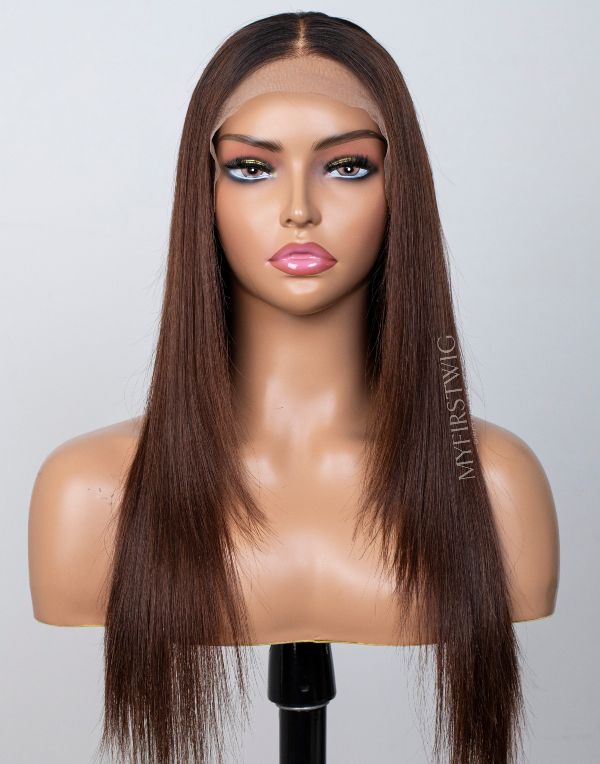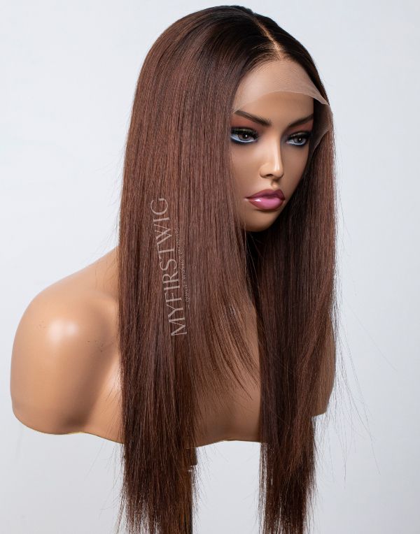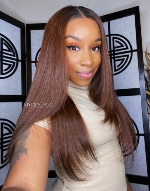 Amena - Caramel Brown Layered Straight Lace Front Wig Malaysian Virgin Hair- LFW081